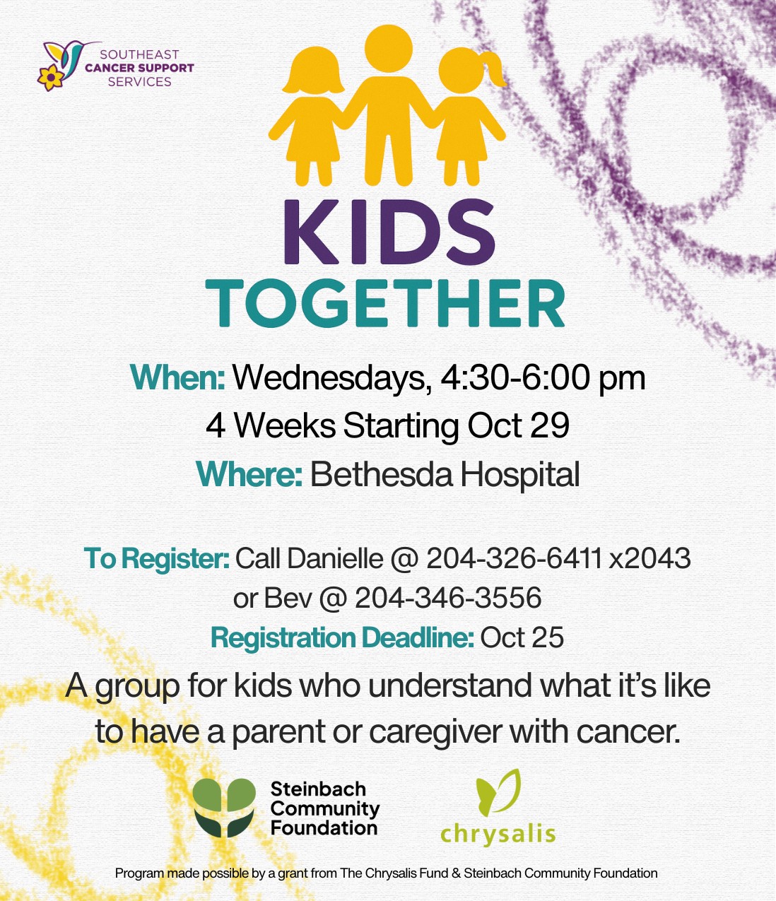 Kids Together – A group for kids who understand what it’s like to have a parent or caregiver with cancer.